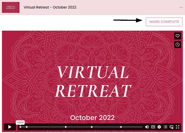 At the top right hand corner of each video, you will see a 'Mark Complete' button. Click on it to mark it as done.